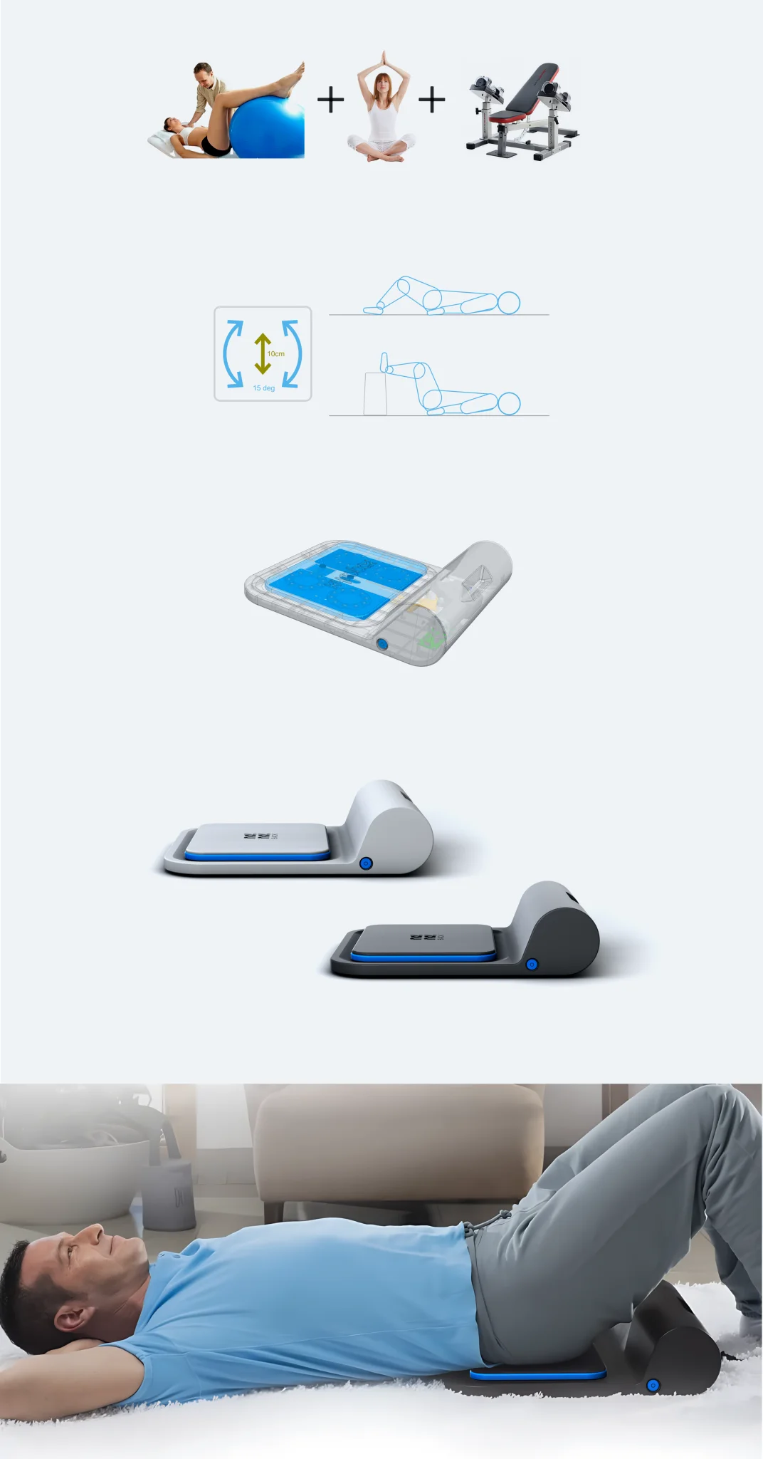 the details.[ To All Projects ]Ergonomics played a central role in our design process. The goal was to create a smooth, controlled spine-bending motion that stimulates natural mobility and helps improve blood flow between the joints.Ergonomics.Designing a home device to relieve back pain means blending physiotherapy, wellness, and technology. Our process starts with the user’s needs, then moves through strategy, design, and engineering—always balancing comfort, effectiveness, and simplicity. EngineeringThrough iterations, prototyping, and testing, we refined the product until it delivered therapeutic effectiveness, comfort, and a pleasant user experience.